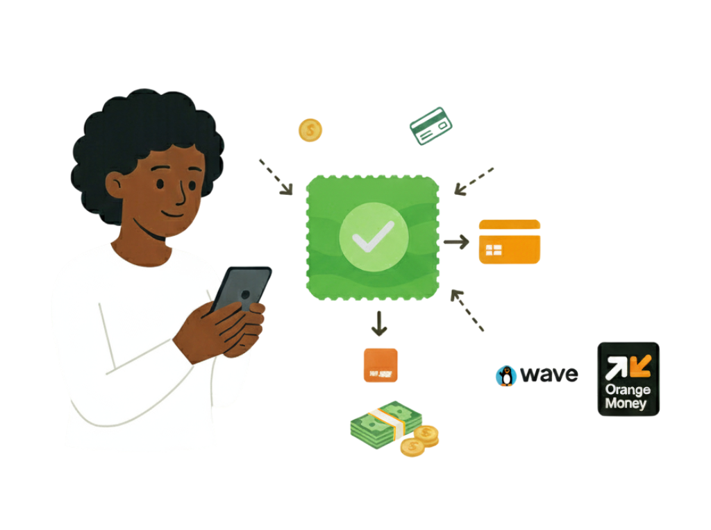 Rechargez votre compte Weerna facilement avec votre Porte Money mobile (Wave , Orange-money) ou avec votre Carte Bancaire (Mastercard).